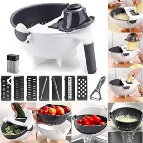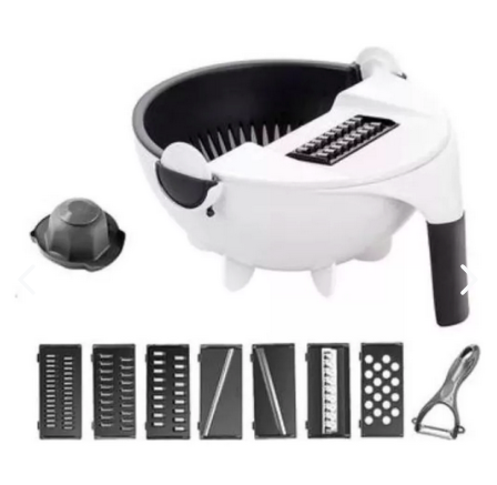 🔪🥕 Rallador 9 en 1 Multifuncional 🥒🍅 Este práctico utensilio de cocina combina 9 funciones en un solo producto para facilitar y agilizar la preparación de tus alimentos: